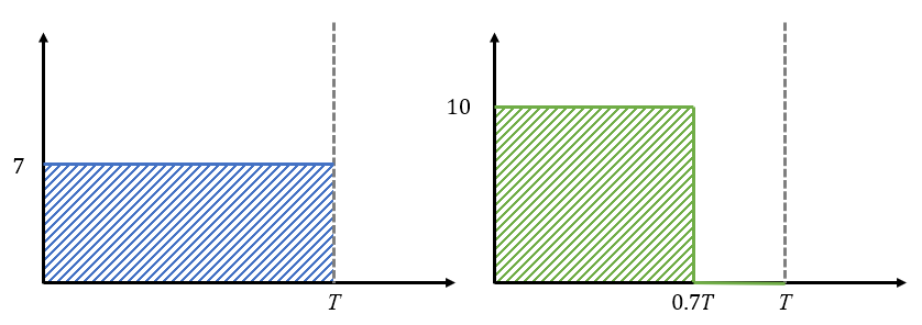 위 그림에서 T 동안 왼쪽과 오른쪽의 평균 값은 모두 7로 동일할 것이다.