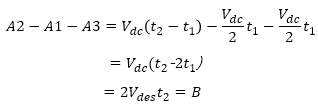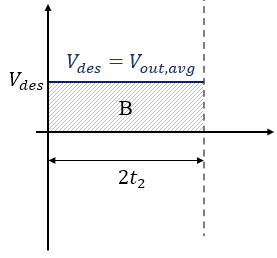축소된 Reference와 Carrier의 비교에 의해 스위치가 동작하여 발생된 출력 전압의 파형은 위와 같다. 이 때 출력의 평균값은 아래와 같이 구할 수 있고, 삼각비에 의한 수식을 대입하여 정리한 값을 B라고 하자.