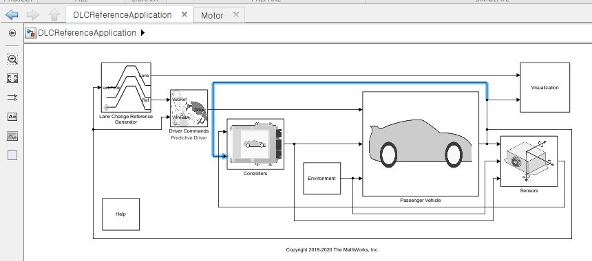 2. DLCReferenceApplication 창에서 Passenger Vehicle의 출력1(VehFdbk)을 Controlles의 입력2(VehFdbk)으로 연결