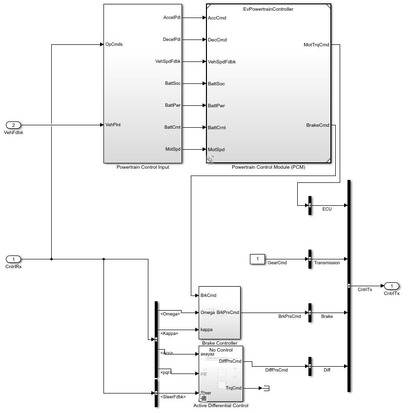 - 붙여넣기 후 입력1(CntrlRx)와 입력2(VehFdbk)을 Powertrain Control Input 블록의 입력1(OpCmd), 입력2(VehPlnt)에 각각 입력